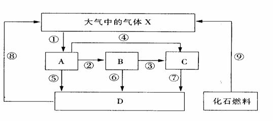 53..( 4分)下图示生物圈碳的循环。第①-③号箭头表示循环过程。请据图分析回答: