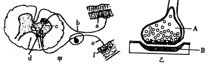 (1)甲图中f表示的结构是__________,乙图是甲图中______(填字母)的亚显微结构放大模式图,乙图中的B是下一个神经元的___________。