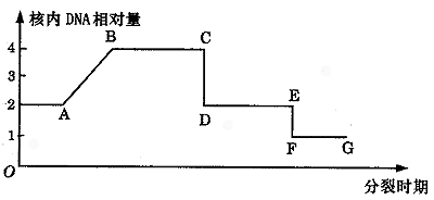 (1)上图是某雌性哺乳动物在 分裂中DNA变化的曲线。其中DNA复制的区间是 。 (2)如果此图表示人的细胞分裂时DNA的变化曲线,在F→G区间,同源染色体有 对,染色体有 条。