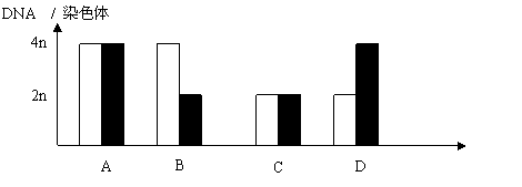 27. 下图表示人体某一个细胞在有丝分裂过程中的细胞核中染色体数(阴影)和DNA分子数(无阴影)在不同时期的统计数据,在A、B、C、D中哪一个图的表达是正确的