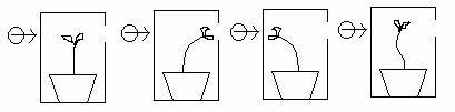 20.如下图所示,在方形暗盒内放一盆幼苗,暗箱一侧开一个小窗,固定光源的光可以从窗口射入。把暗盒放在旋转器上水平旋转,保持15min匀速转一圈。一星期后幼苗的生长状况是