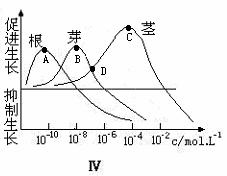 26.下图表示生长素不同浓度植物根、茎和芽的影响。
