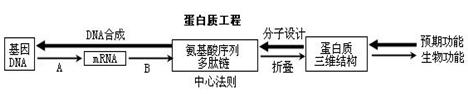 37.蛋白质工程是新崛起的一项生物工程,又称第二代基因工程。下图示意蛋白质工程流程,图中A、B在遗传学上依次表示