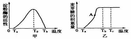 C.图乙中Tb至Tc的曲线表明随温度的升高,麦芽糖的积累量不再上升,酶的活性已达到最高
