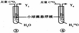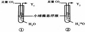 下图为光照强度相同,水和小球藻的初始质量均相等的条件下,小球藻进行光合作用的实验示意图。一段时间后,试管质量大小关系的比较正确的是( )