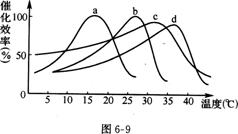 54.有人测定了A、B、C、D四种植物体内多种酶的活性与温度的关系,结果如图6-9所示。根据图中所示的信息,你认为在25℃条件下竞争能力最强的生物和对温度适应范围最广的生物分别是 ( )