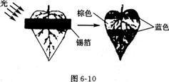 60.图6一lO表示德国科学家萨克斯的实验:在叶片照光24小时后,经脱水、漂洗并用碘液处理,结果有锡箔覆盖的部分呈棕色,而不被锡箔覆盖的部分呈蓝色。本实验说明 ( )