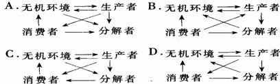 26.在一般情况下,关于生态系统中物质流动的主要渠道的正确图解是