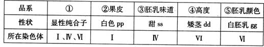 54.(13分)已知玉米体细胞中有10对同源染色体,下表表示玉米5个纯系的表现型、相应的基因(字母表示)及所在的染色体。②-⑤均只有一个性状属隐性纯合,其他均为显性纯合。如品系①的基因型为PPSSDDGG,品系②为ppSSDDGG。