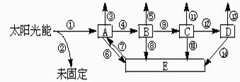 (5)B属于_____________________动物,它的粪便中的能量会被_________________利用,通过过程______________表示。