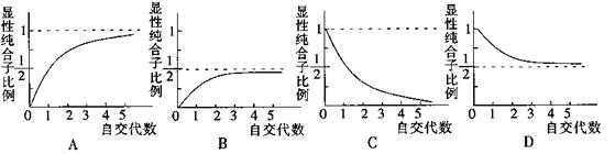 13.下列曲线能正确表示杂合子(Aa)连续自交若干代,子代中显性纯合子所占比例的是 ![]()