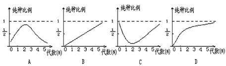 若让某杂合体连续自交,那么能表示自交代数和纯合体比例关系的是