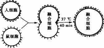 12、科学工作者用绿色和红色荧光材料,分别标记人和鼠的细胞膜上的蛋白质。当两个标记细胞融合成一个细胞后,起初一半膜发出绿色荧光,另一半膜发出红色荧光,一段时间后,两种颜色的荧光点均匀分布,如图所示。请分析回答: