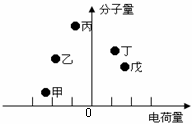 已知某样品中存在甲、乙、丙、丁、戊五种蛋白质分子,其分子大小、电荷的性质和数量情况如右图所示,下列有关蛋白质分离的叙述正确的是