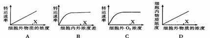 下图表示正常情况下,不同物质穿过细胞膜进入细胞的四种情况。若在X点加入有氧呼吸抑制剂,下列曲线中一定会发生明显变化的是
