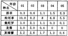 (2)很显然,豚草与表中所列本地植物呈竞争关系,它们相互争夺 。调查结果表明,豚草具有生存优势。