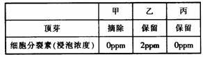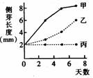 13、将甲、乙、丙三株大小相近的同种植物,分别如下表处理,实验结果如右图所示。