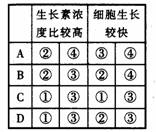 18、下图表示水平植物的生长状况。比较①②③④处生长素的浓度及细胞生长速率,正确的