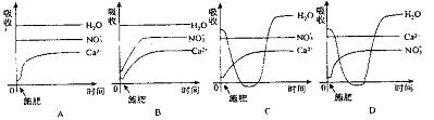 33.某植株成熟叶正常,部分幼叶出现病态,用Ca(NO3)2根部施肥后幼叶恢复正常。下面是施肥后根尖成熟区细胞吸收Ca2+、NO3和H2O的示意图,正确的是 ( )