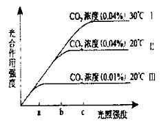 35.科学家研究CO2浓度、光照强度和温度对同一种植物光合作用强度的影响,得到实验结果如右图,请据图判断下列叙述不正确的是 ( )