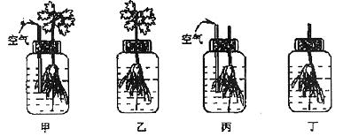 (1)实验中,向甲、丙两瓶持续充入空气,测量四只培养瓶内溶液中K+含量,结果如下图。