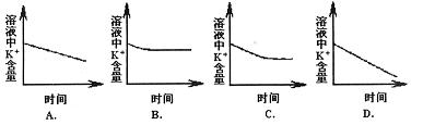 表示甲瓶溶液中K+含量变化的曲线图是 。