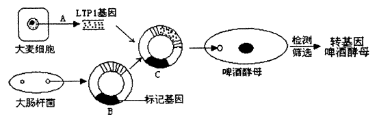 32.(8分)科学家将使啤酒产生丰富泡沫的LTP1基因导入啤酒酵母中,使其产生LTP1蛋白,酿出泡沫丰富的啤酒,具体的操作过程如下: