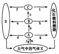33.(8分)右图表示生态系统部分物质的循环,A、B、C、D构成群落,a–i表示物质循环的