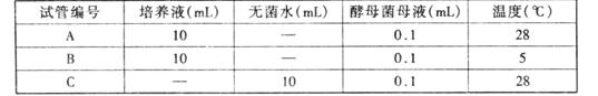 ②用显微镜定期测定酵母菌数目,结果A管中第3天数目迅速增加,第5天达到最大值,第6天结束实验。请在坐标中画出A、B、C三组预期结果的走势。