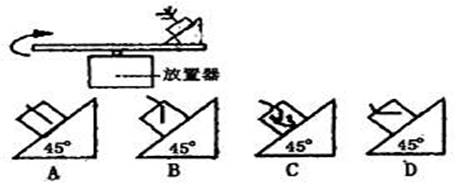 33.某同学设计了如图关于植物向重力性生长的实验:首先在花盆里种上幼苗,把花盘固定在直径为2m圆盘的边缘处,盘底与地面成45°角。然后旋转圆盘,使花盆水平方向所受的力与垂直方向的重力相等。最后,保持圆盘旋转的速度长期不变,观察植物根部生长的方向是下列四选项的