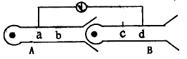右图所示为测定A、B为两个神经元之间电流传递的实验装置,图中ab=cd。用微电极分别刺激b、c处,电流表的变化是
