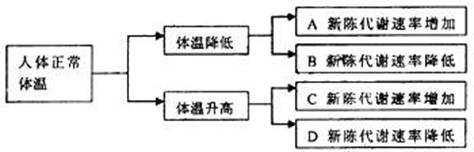 35.下图中A-D的体温调节中,哪一途径表示人体持续生活在过冷环境中,并可能导致死亡