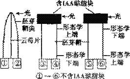 41.右图示意几组研究生长素产生部位及运输方