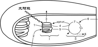 (3)图中Ⅰ阶段产生的[ ]_________和[ ]____________,用于Ⅱ阶段的反应。(本小题答图中标号及其物质名称)