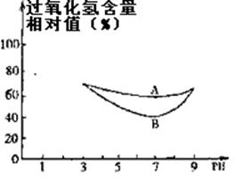 (2)另取4支试管,相同条件下,在每一支试管中加入1/2的提取液,重复上述实验。将两次实验中分别测得的过氧化氢含量变化情况绘制成下图。曲线A和B中,过氧化氢含量的最低点对应于横坐标的位置相同,原因是 。