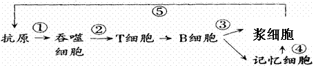 D.机体再次受到同种抗原刺激可在短时间内发生⑤反应,因为③过程可迅速完成