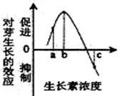 24、右图表示不同浓度生长素对芽生长的影响。当植物表现出顶端优势时,顶芽和最靠近顶芽的侧芽所含生长素的浓度依次分别为( )