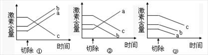6.下图①②③分别表示切除正常幼年狗的某种腺体后,短期内该狗血液中三种激素--促甲状腺激素释放激素(a)、促甲状腺激素(b)、甲状腺激素(c)的含量随时间的变化曲线。①②③分别切除的腺体是