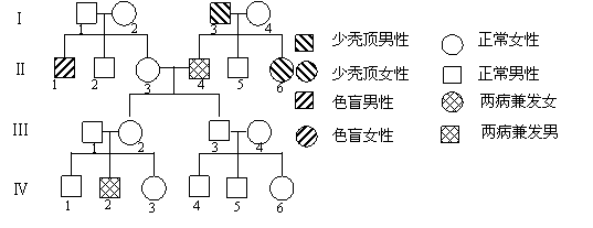 ⑵引起Ⅳ2少秃顶的基因不可能来源于第Ⅰ代的 号个体。