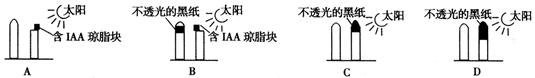 (2)如果将④的去掉尖端的胚芽鞘颠倒后再将此琼脂块放在如图位置,胚芽鞘的生长情况是_____________,说明原因:____________________________________________