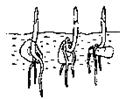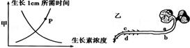 播种时随机摆放的种子萌发后,根和茎会出现下图所示的生长现象,以下对此现象的解释,不正确的是 ( )