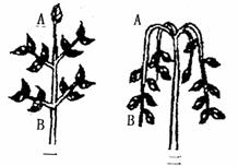 (2)向光生长的幼苗,其背光面浓 于向光面 于B点。