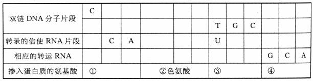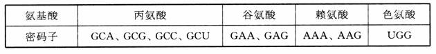 (1)请将色氨酸(UGG)的密码子符号填写到上表中适当的位置。