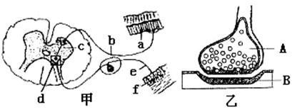 (10分)下图甲示反射弧模式图,乙是图甲中某一结构的亚显微结构模式图。请分析回答: