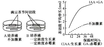 ②将两组豌豆茎切段分别放入两个标号为A、B的培养皿中(培养液的成分见下图),在相同且适宜的条件下培养。
