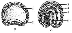 (2)随着胚胎发育的进行,甲图中1处的细胞最可能成为乙图中[ ] 胚层的一部分,甲图中2处的细胞最可能成为乙图中[ ] 胚层的一部分。