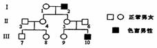 人的红绿色盲是由X染色体上隐性基因控制的,下图是某家族红绿色盲的遗传系谱图,图中Ⅱ-10个体的色盲基因来自于