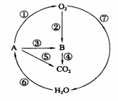 右图为物质循环简图,A为生产者,B为消费者。下列叙述错误的是( ) ( )