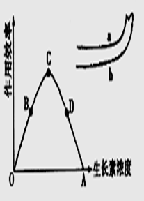 如右图,若茎的a侧生长素浓度在B点以下的浓度范围