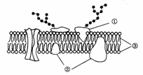 6.右图是细胞膜的亚显微结构模式图,①-③表示构成细胞膜的物质,有关说法错误的是